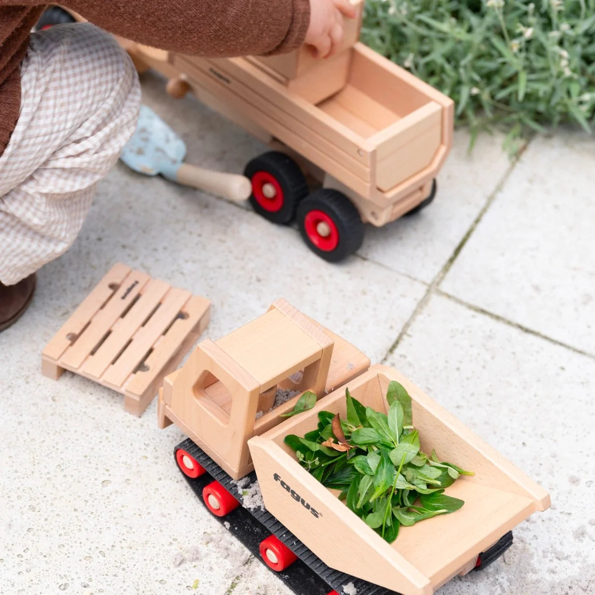 Camion à benne basculante Fagus Caterpillar - Véhicules de jeu en bois d'Allemagne