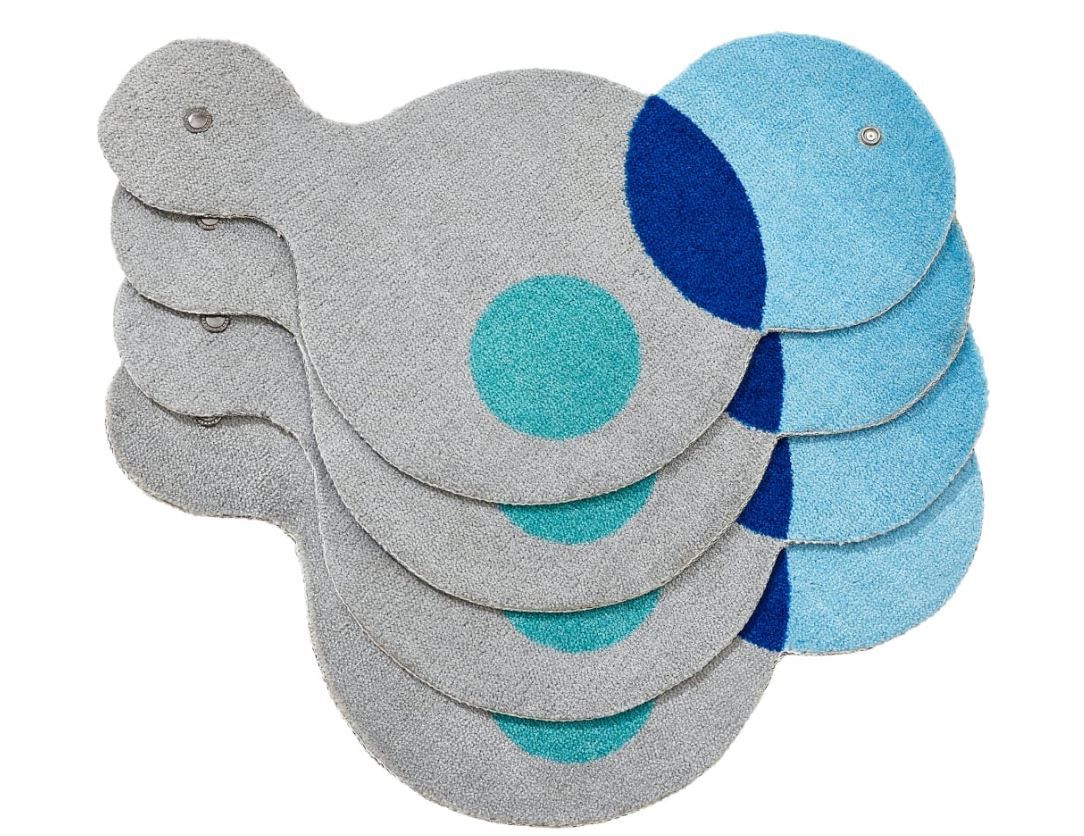 L'ensemble se compose de quatre mini-tapis de forme inhabituelle qui s'emboîtent les uns dans les autres.