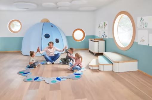 HABA Pro Breeze.upp ~ Un concept d'espace flexible pour créer de l'espace selon les besoins. Ce meuble est idéal pour les enseignants et les enfants de 3 à 6 ans. Il est particulièrement utile dans les jardins d'enfants, les centres d'éveil, les garderies ou les bibliothèques pour enfants. Un look entièrement nouveau - toujours compatible avec nos meubles existants. La couleur et la forme se fondent harmonieusement les unes dans les autres, créant ainsi un environnement apaisant et peu stimulant. Complétez les salles de groupe avec des tables et des tabourets pour manger, bricoler, construire ou un espace de retraite.