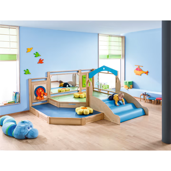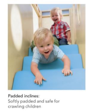 Welcome to paradise for crawling children. Steps and padded wave climb, invite little ones to run around it and slide down. Play area is a soft retreat.