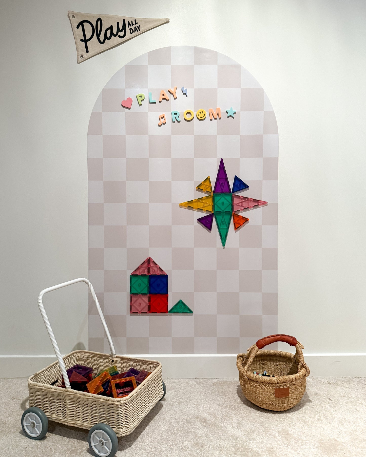 We took everything you love about the original Magic Playwall and supersized it. The MEGA is 50% bigger and features a trendy checkered print — a modern twist on our multifunctional, magnetic wall decal. Still the same matte finish and magic, now with even more room and height to play.