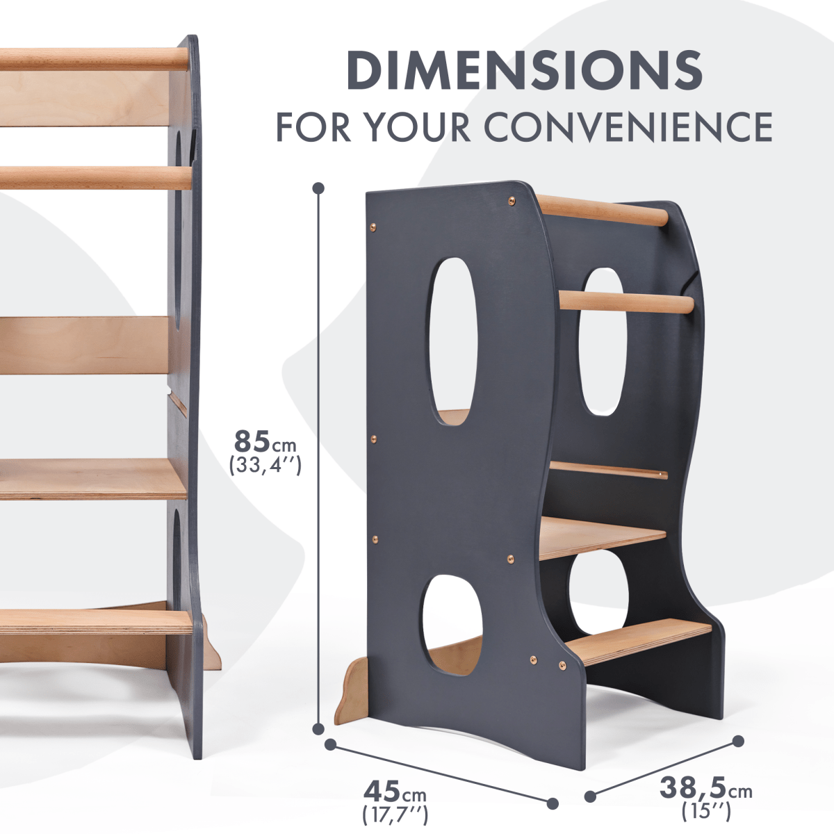 Stable Montessori Tower: Wooden Growing Chair - Grey