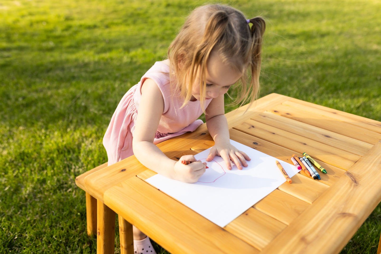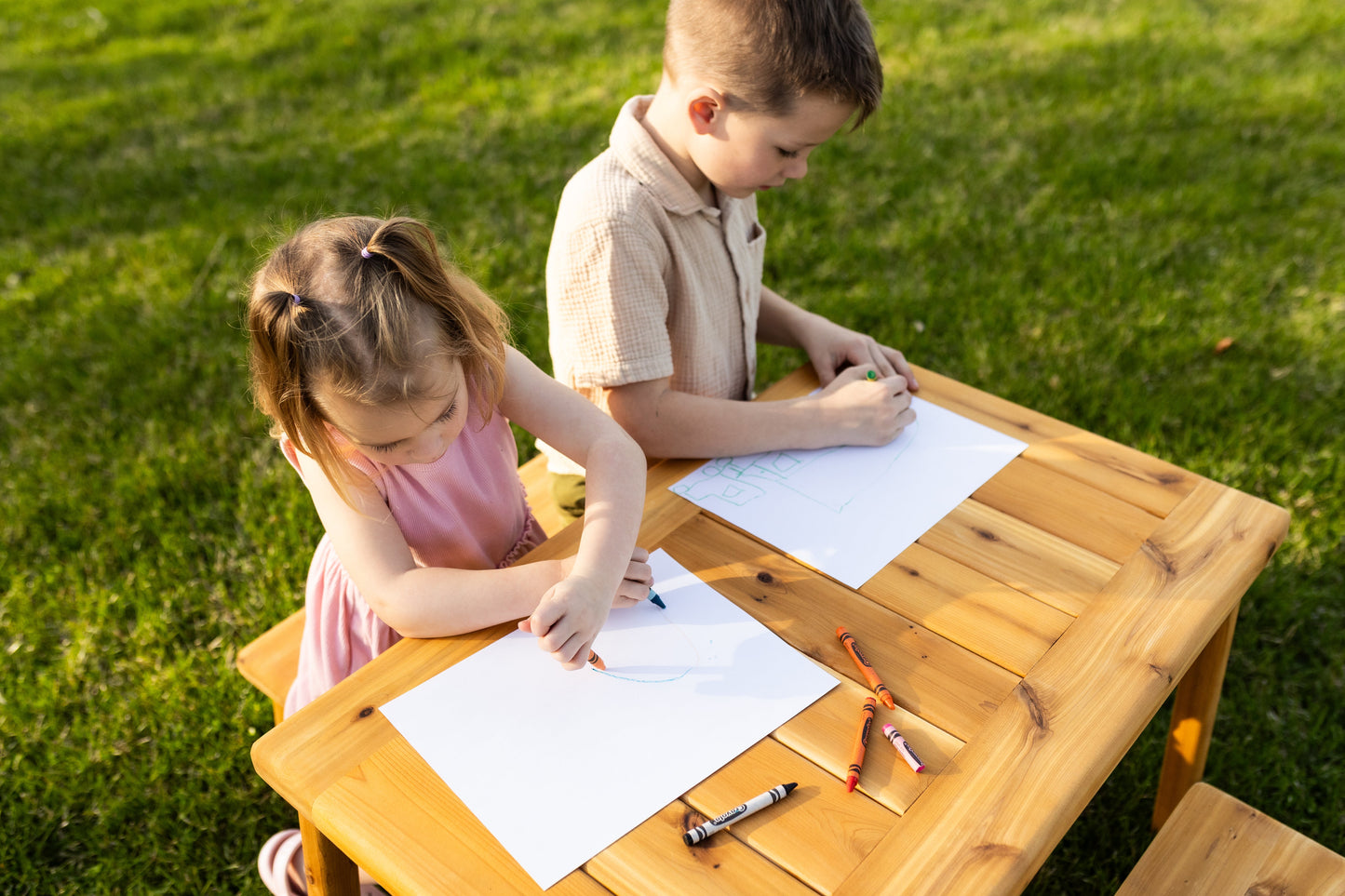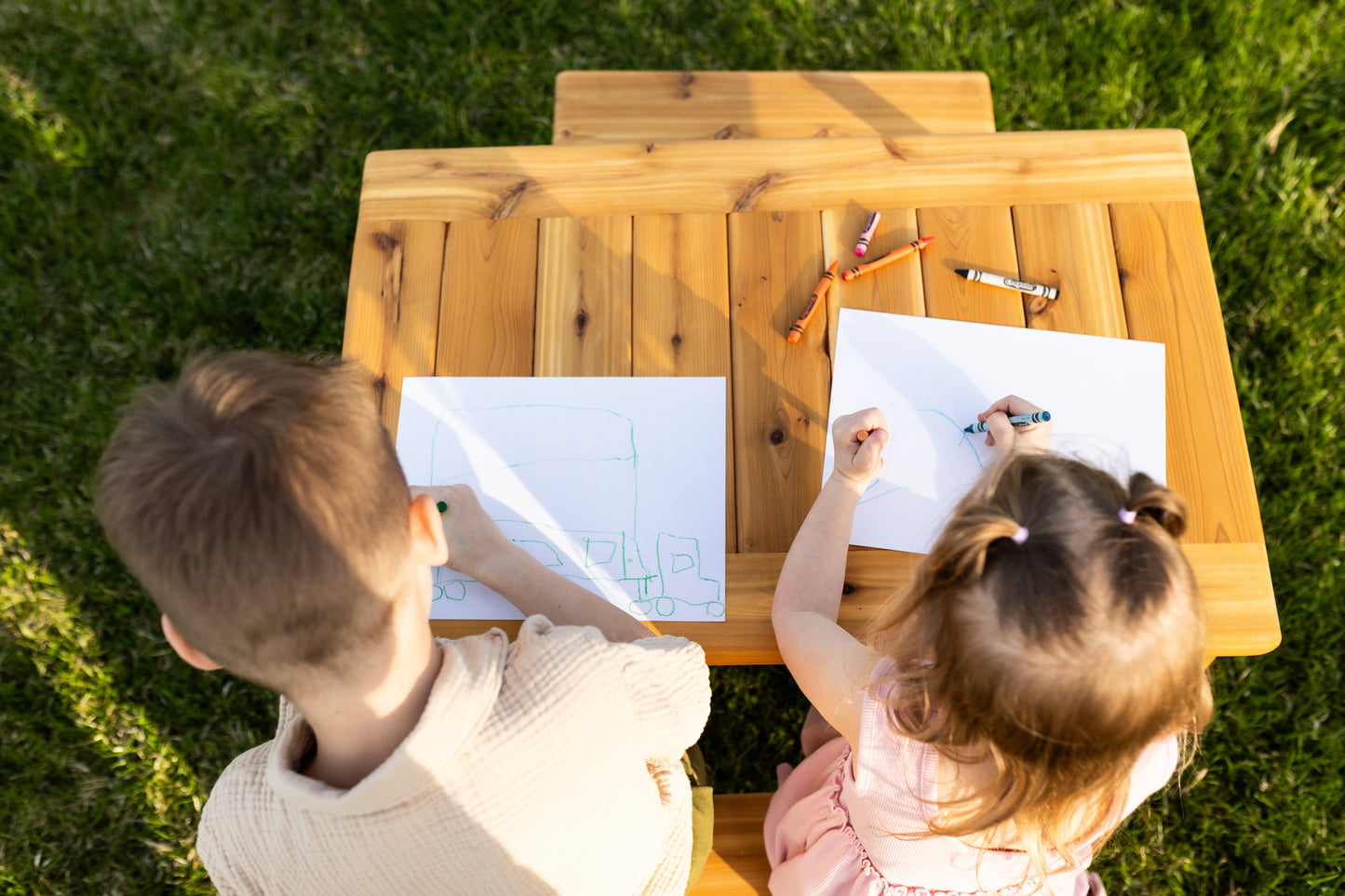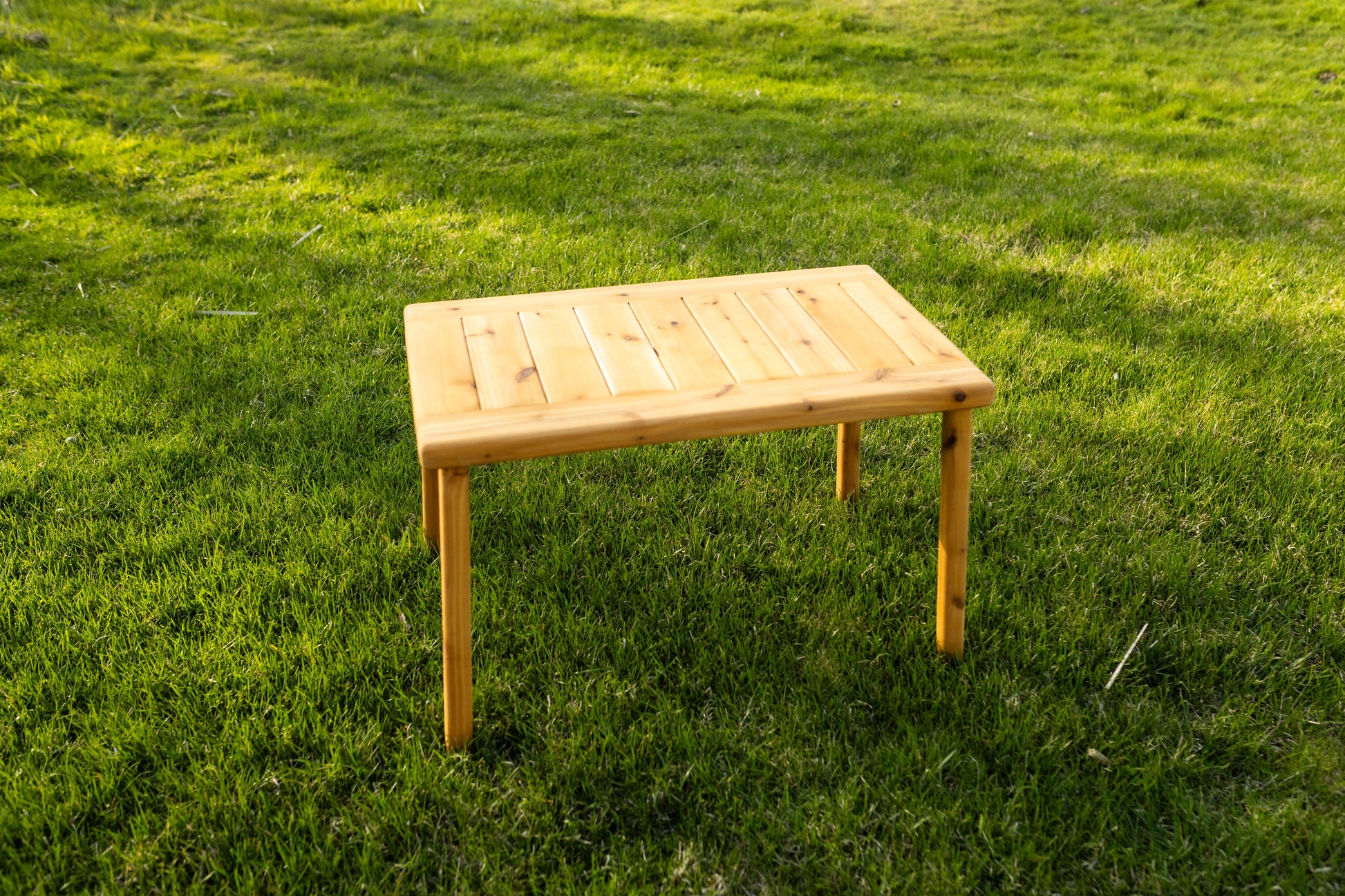 This table is wonderful for use inside or outside your home, or for preschools, schools and daycares. Each table has been carefully hand-sanded smooth for safety and comes finished with UV Protection. It is made of domestically sourced cedar that is known to last for years when left outdoors. We recommend refinishing your table every 2 years or so. The table comes partially pre-assembled with hardware required.