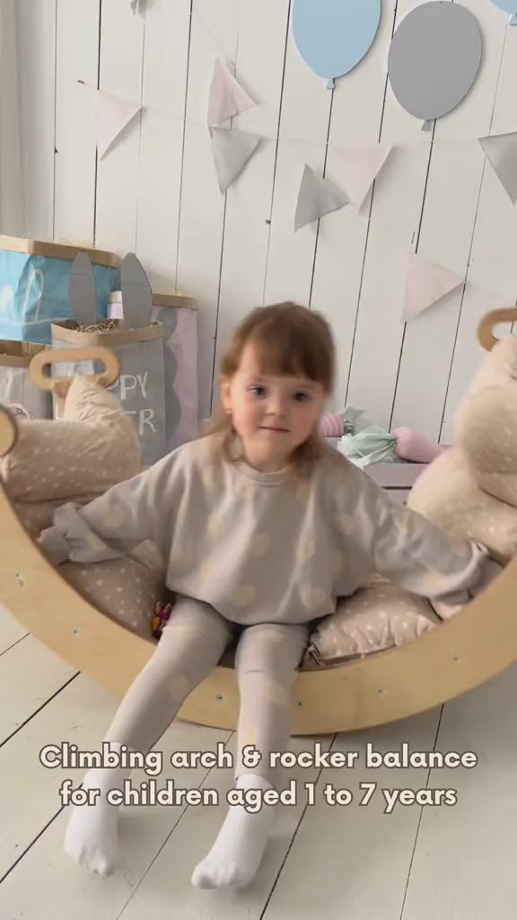 Introducing the Montessori Climbing Arch - an ideal addition to your child's playroom that promotes physical development and imaginative play. Crafted with safety and development in mind, this versatile toy seamlessly transforms from a climbing arch into a rocker. Designed to support and strengthen your child’s limbs through the Montessori approach, this climbing frame is suitable for children aged from 1 to 6-7 years old.
