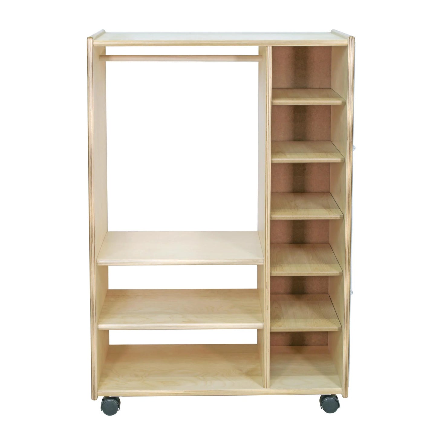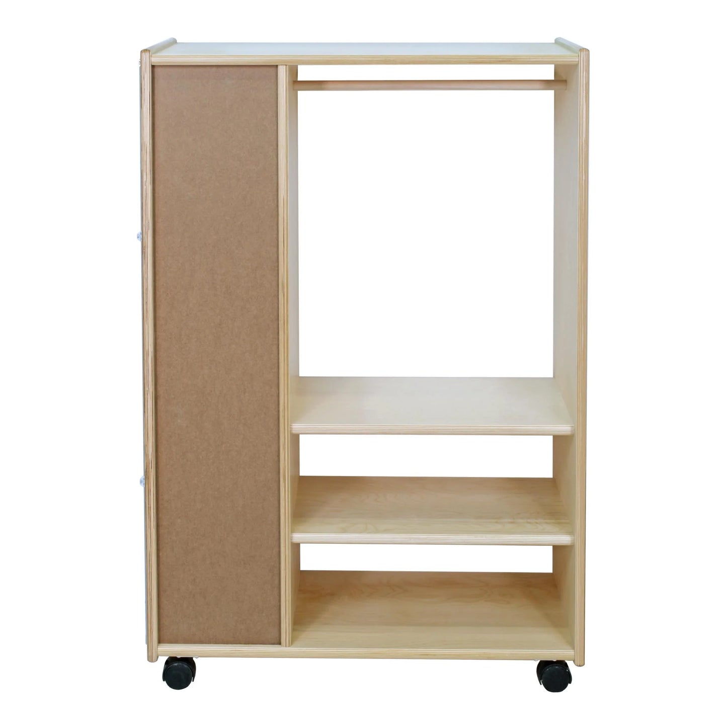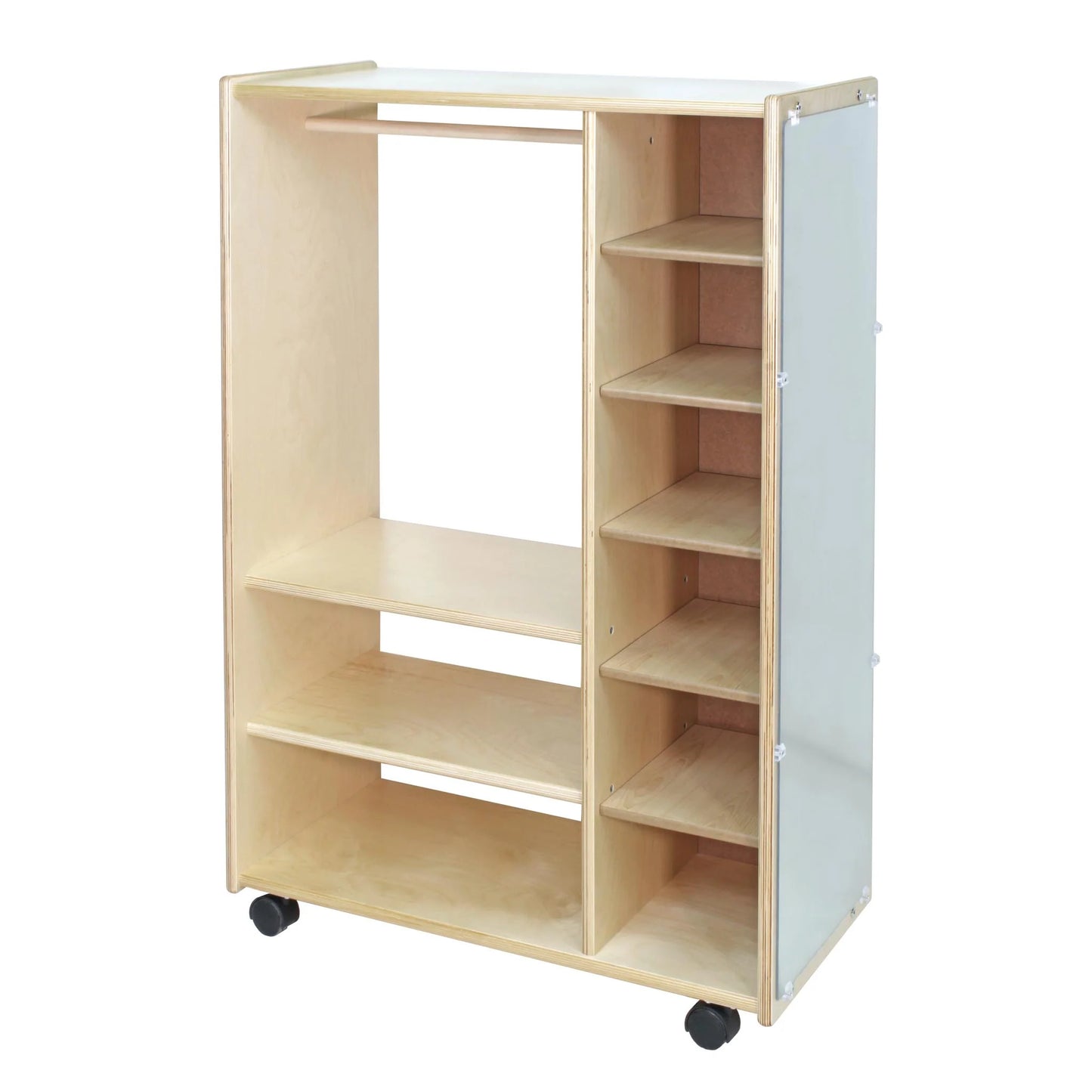 Trojan's Dressup Centre is perfect for interactive play and pretend for aspiring thespians. Has a full length mirror at one end (acrylic not glass), 6 cubbies for accessories, 2 shelves, and a bar for hanging costumes.