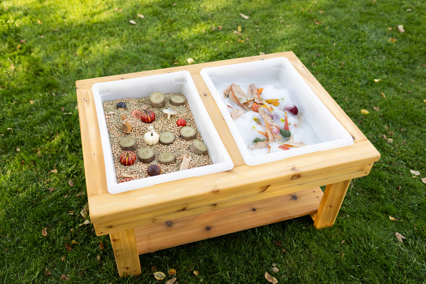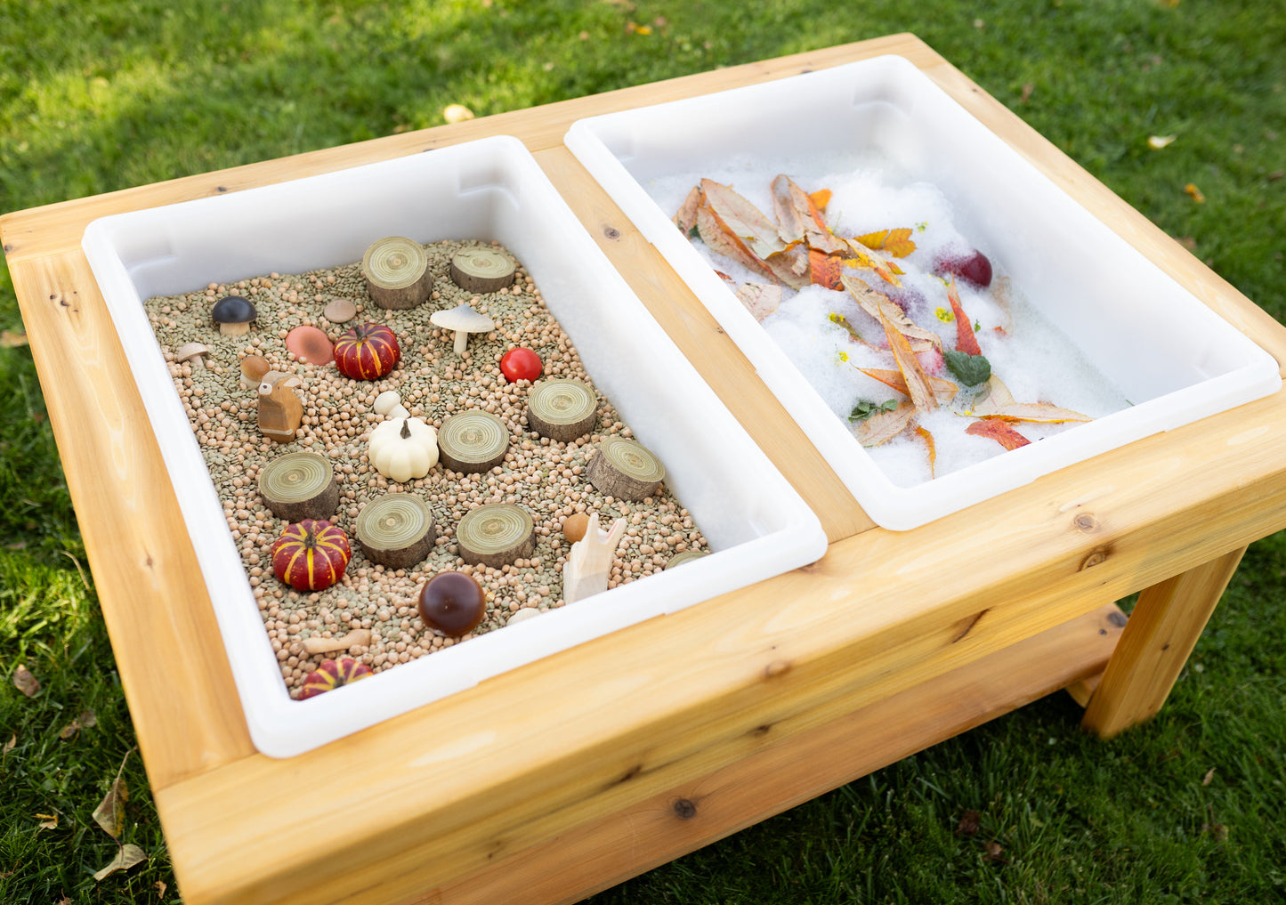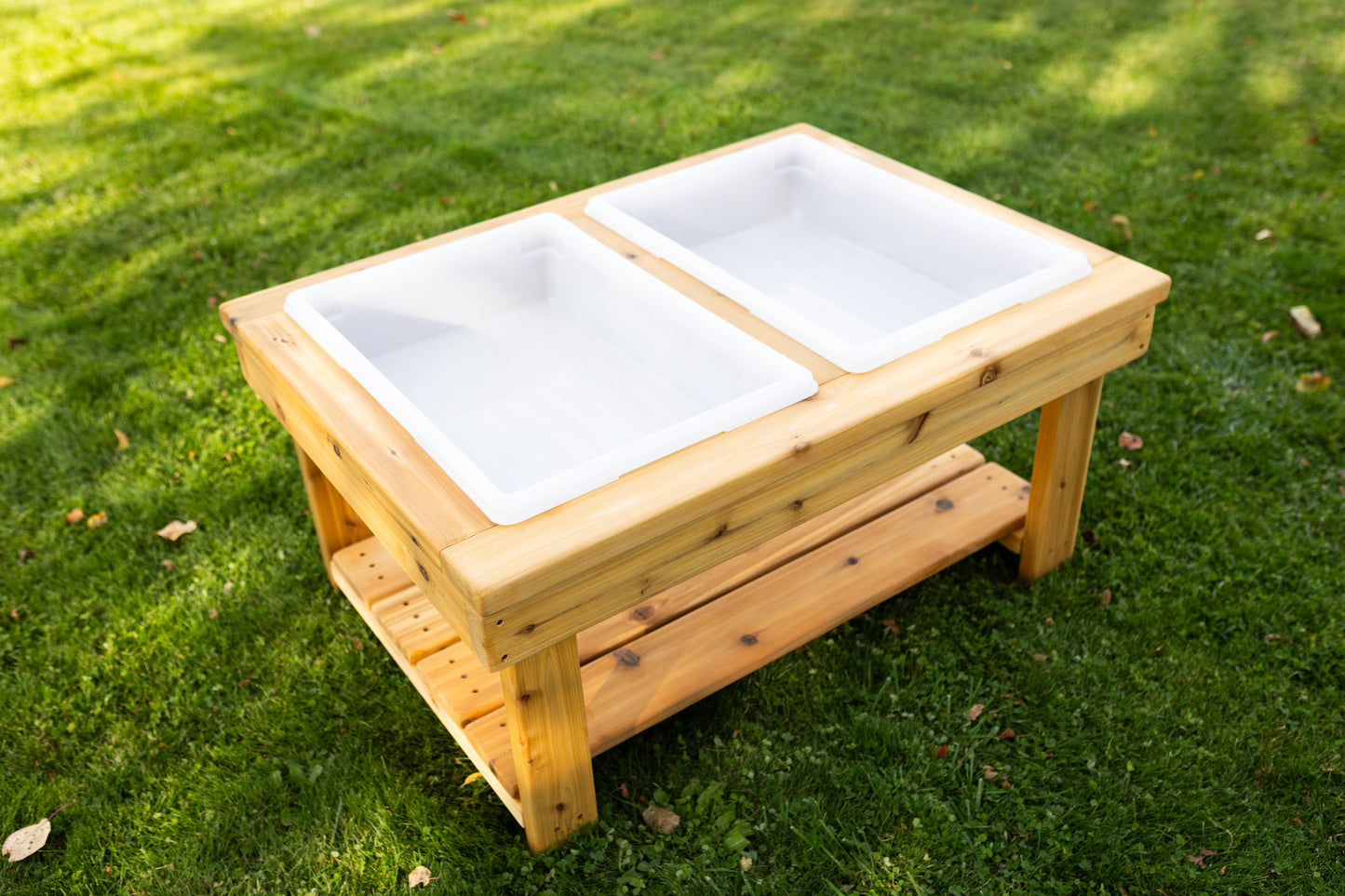 Elevate your child’s playtime with our Dual Handmade Cedar Sensory Table, designed to inspire creativity and sensory exploration. Meticulously crafted from high-quality western red cedar, this table is a durable and versatile addition to any play area, providing endless opportunities for fun and learning.