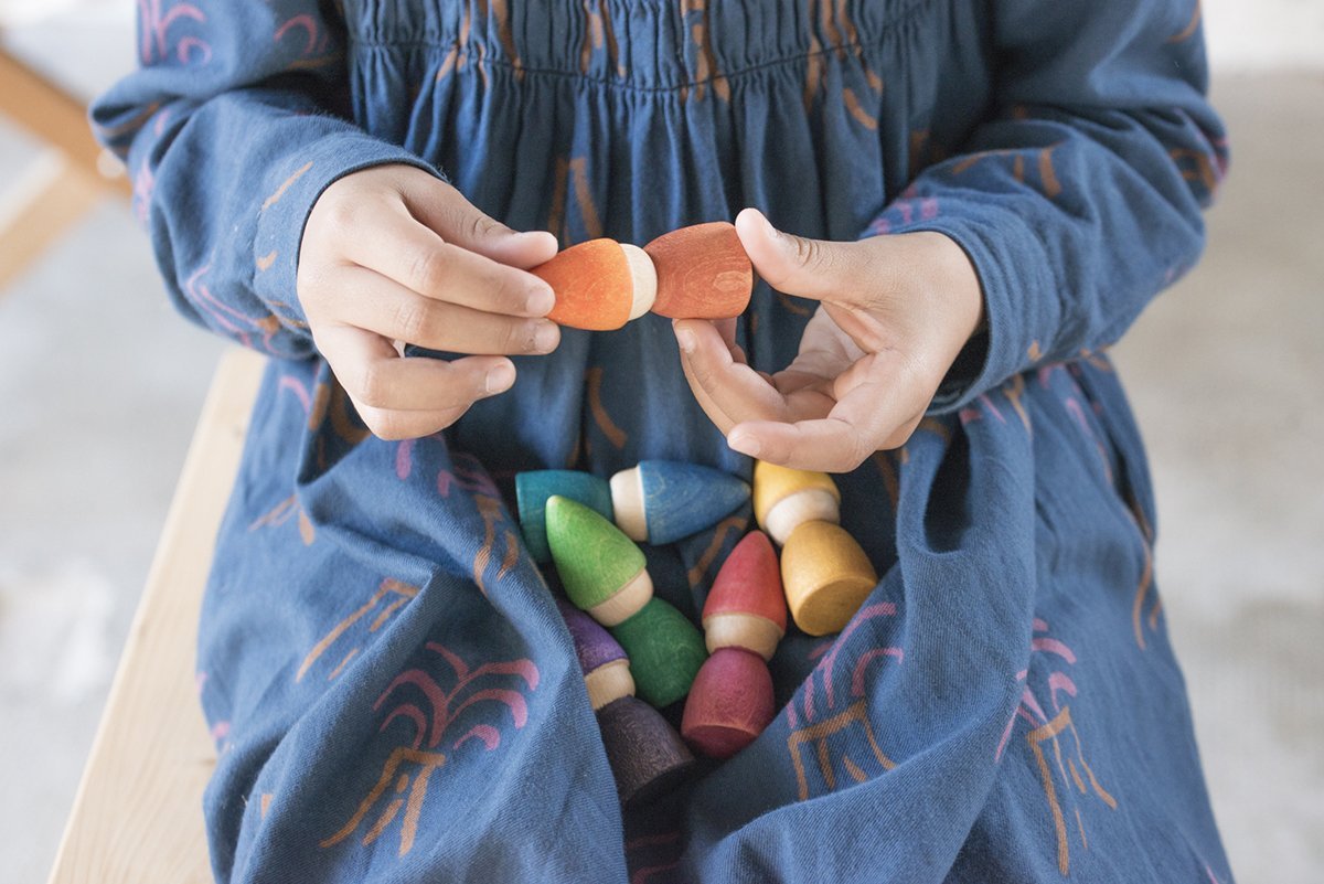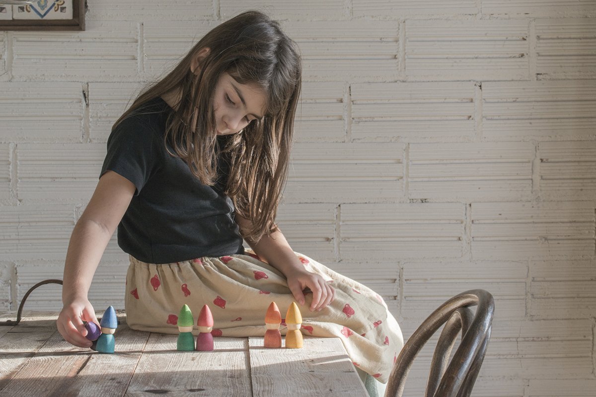 6 Rainbow Nin® Tomten 70 mm hight . The 6 Tomten allow to create a creative playing possibilities where their characters can be transformed according to the imagination of each boy or girl dreaming. imaginary worlds.