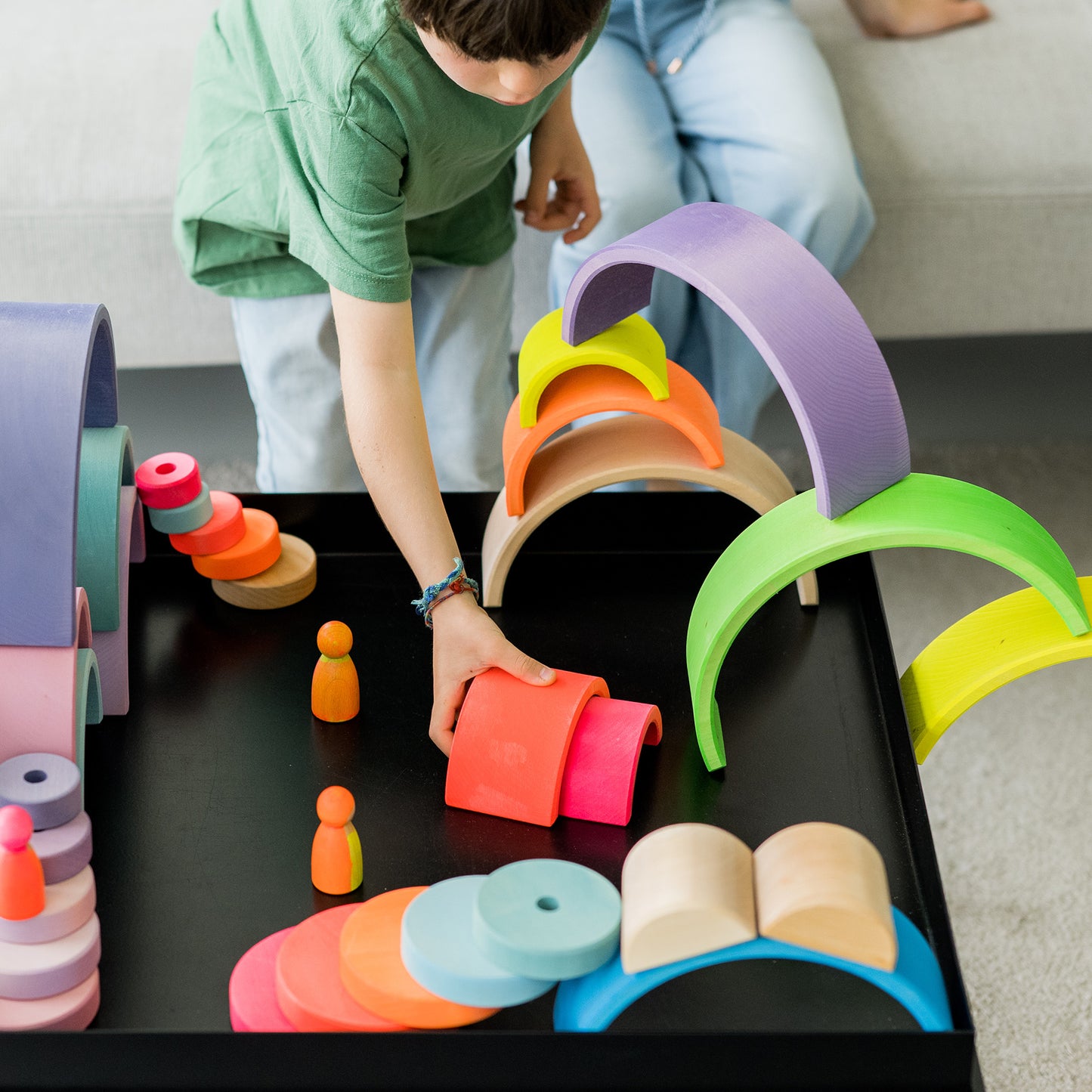 Grimm’s are particularly proud of the fact that they have succeeded in using NEON colours in glaze technology for the first time 🎨 This is an absolute novelty in the field of colour application for wooden toys — a significant milestone! And of course the well-known GRIMM’S haptic remains as usual. ✨