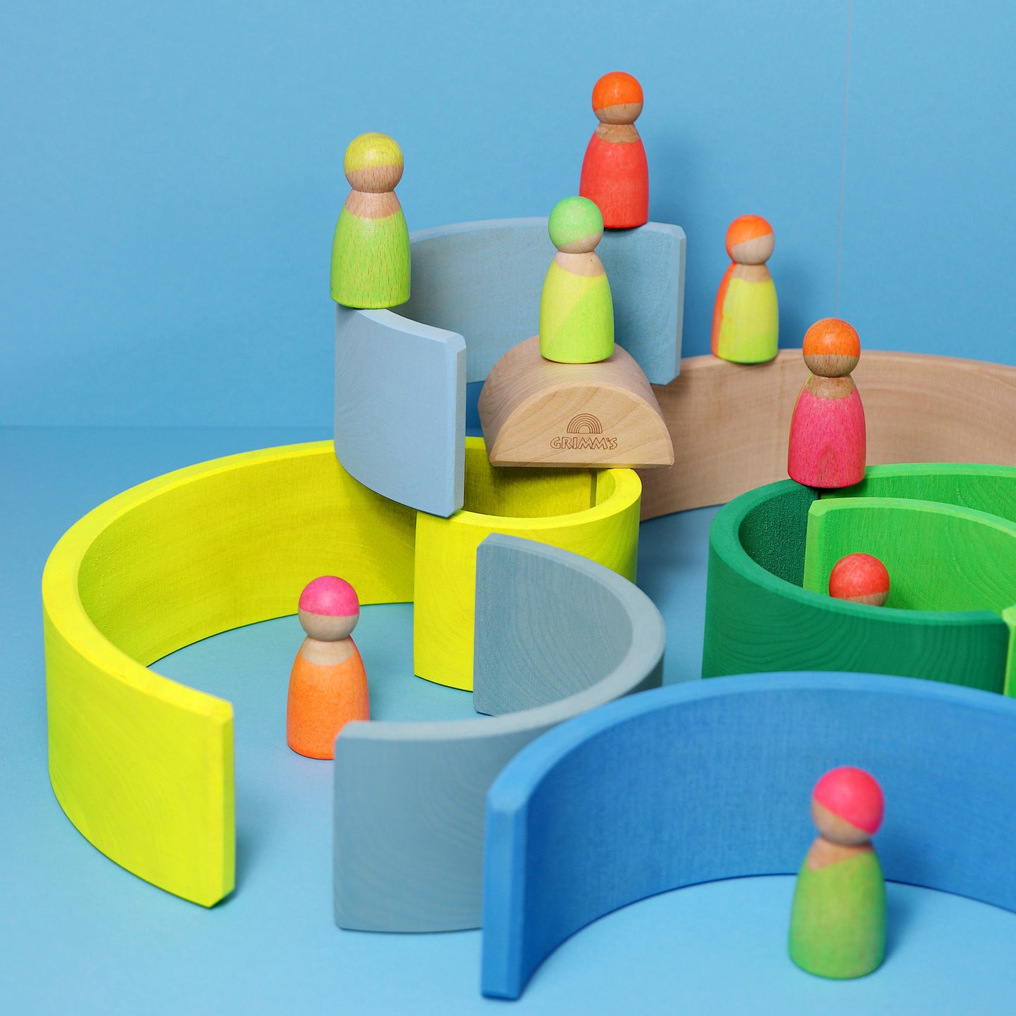 GRIMMS GOES NEON! New for 2023, the Grimm's neon collection is a world first: vibrant organic NEON paint for wooden toys! 🌈