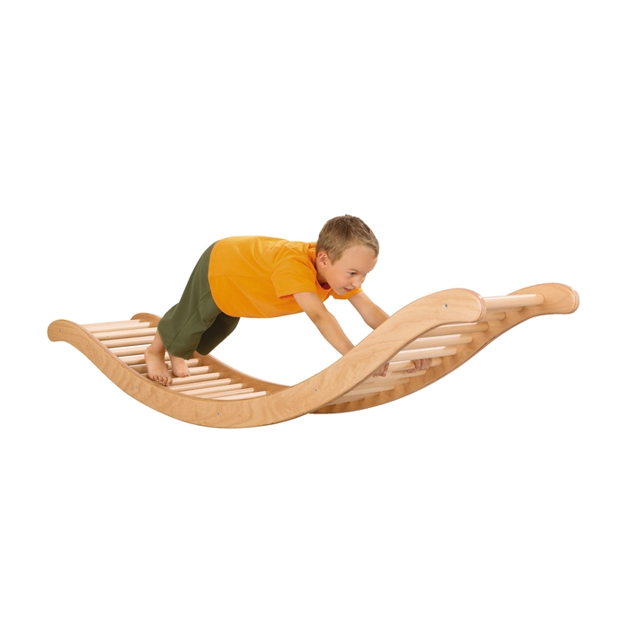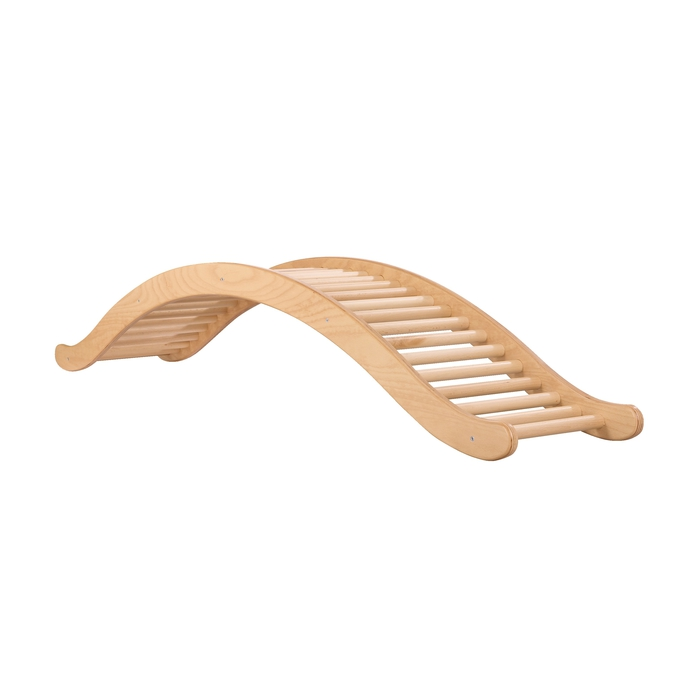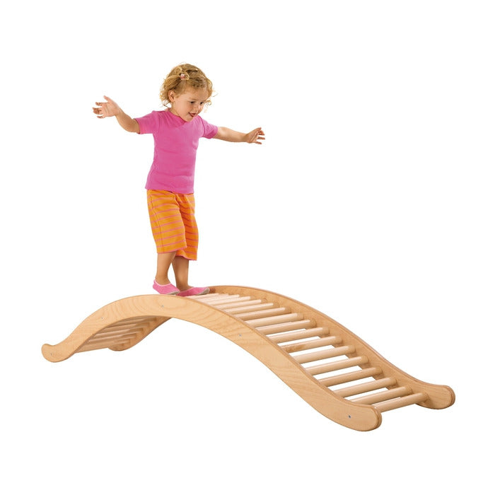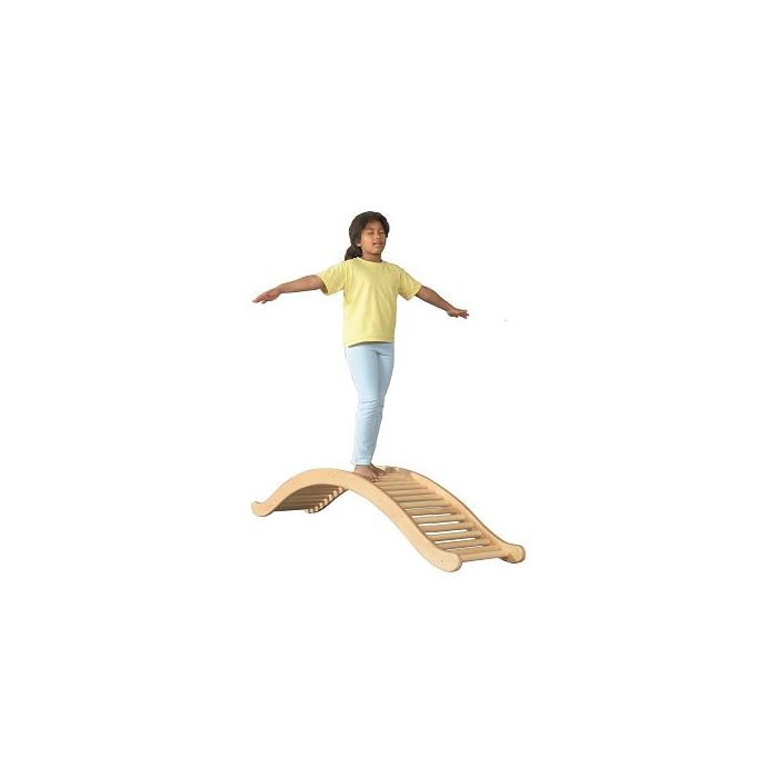 climbing, rocking, balancing, lying down or see-sawing. When turned over, use as a bridge - they can crawl through below or walk over the top of it. Going barefoot is a valuable lesson for foot balance and coordination. With its light weight frame, it can quickly be carried to another location. Ideal for movement sites, such as rehabilitation rooms and physical education classes. Weight Capacity: 330 lbs. Made of coniferous beech wood and pine with metal braces.