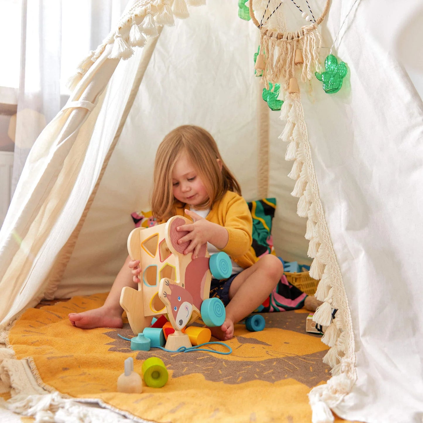 This squirrel is ready to scurry all day long to help little ones gather shapes and sort colors! This clever 2-in-1 pulling toy and sorting box will promote the development of motor skills and recognition of colors and shapes. With smooth gliding wheels, this cheerful squirrel will provide endless fun for little walkers and curious kids to explore.