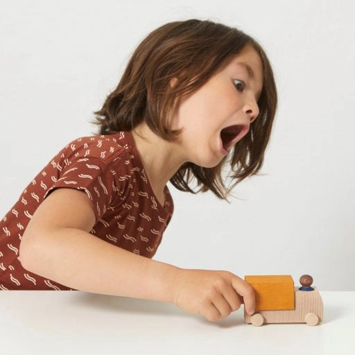Have you ever wanted to be a truck driver? Now you can! Our little wooden trucks are waiting to hit the road with you! Which one will you choose? Lubulona wooden trucks are available in six different colours (plum, ochre, lime, dark blue, red and grey) and all come with a little truck driver. The wooden trucks are our latest addition to the Lubulona world and are compatible with any of our Lubu Town products. The dark blue and lime trucks can also be found in our new vehicle packs ‘on the Road’.