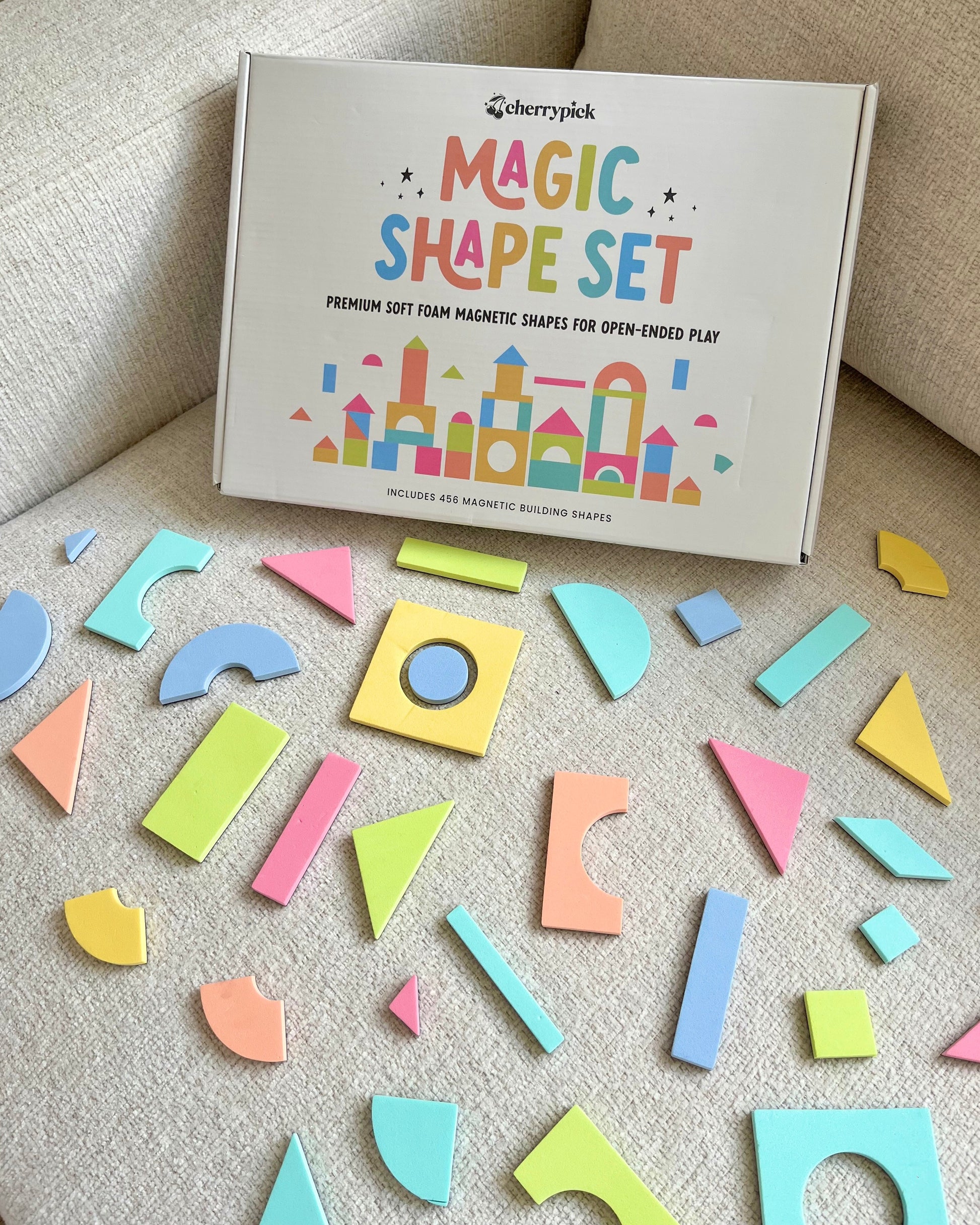 Unleash endless creativity with our Magic Shape Set — 450+ premium soft foam magnetic pieces made for open-ended play. From castles to creatures to colorful patterns, kids can design, build, and reimagine again and again right on your Magic Playwall or any magnetic surface! Perfectly sized for little hands, these durable, non-toxic shapes make imaginative play hands-on, tactile, and oh-so fun. With no rules and no limits, every creation is theirs to explore.