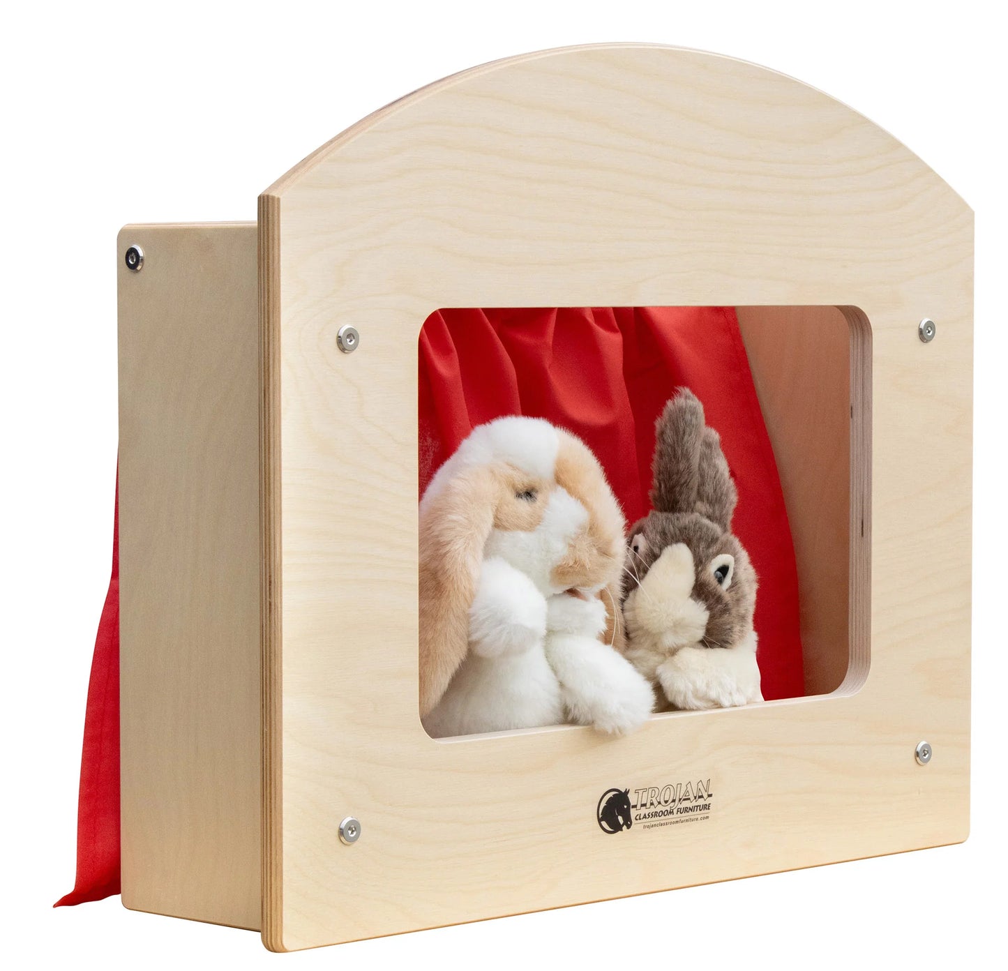 Trojan's Puppet Stage for the Desktop is perfect for interactive play and pretend for aspiring thespians. It's a great way to encourage cooperation and presentation. Red curtain included.
