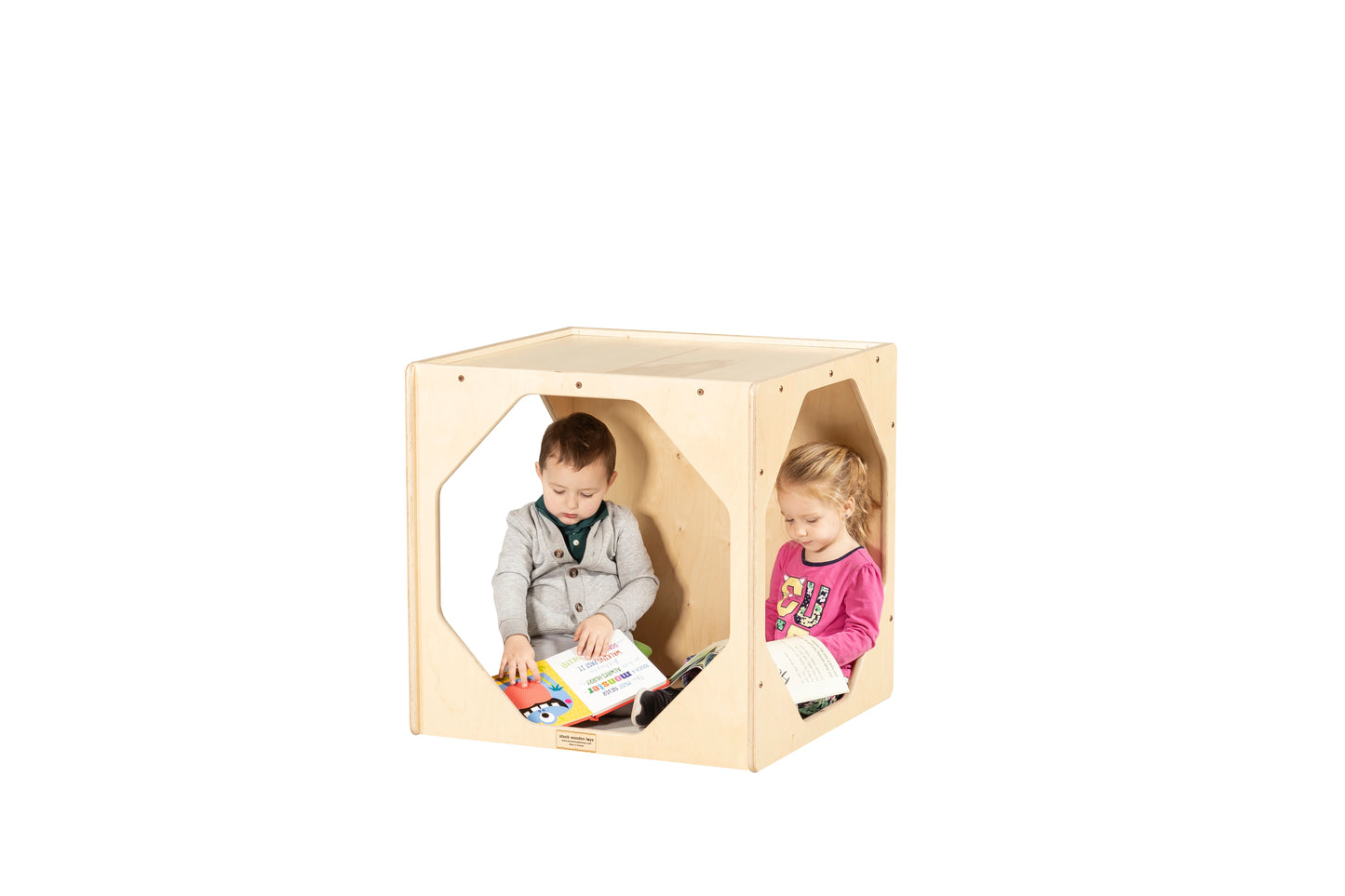 Made from beautiful solid Baltic birch 3/4″. The perfectly square hideaway offers a relaxed atmosphere for children to just kick back and read, or play. Assembly required. Ages 1+.
