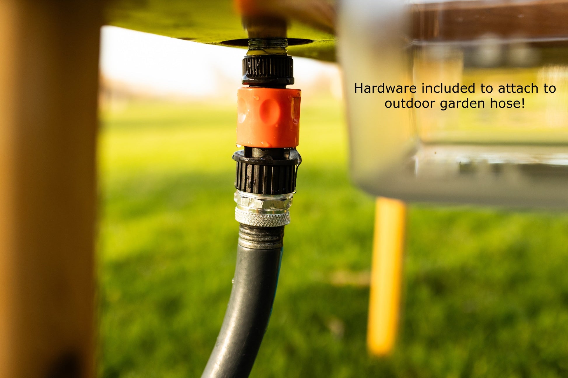 Our newly released Essential kitchen includes everything you love most in a mud kitchen! Includes a real functional faucet that connects to any standard garden hose (hose hookup hardware included) and turning knobs! Your kids will have hours of open-ended fun.