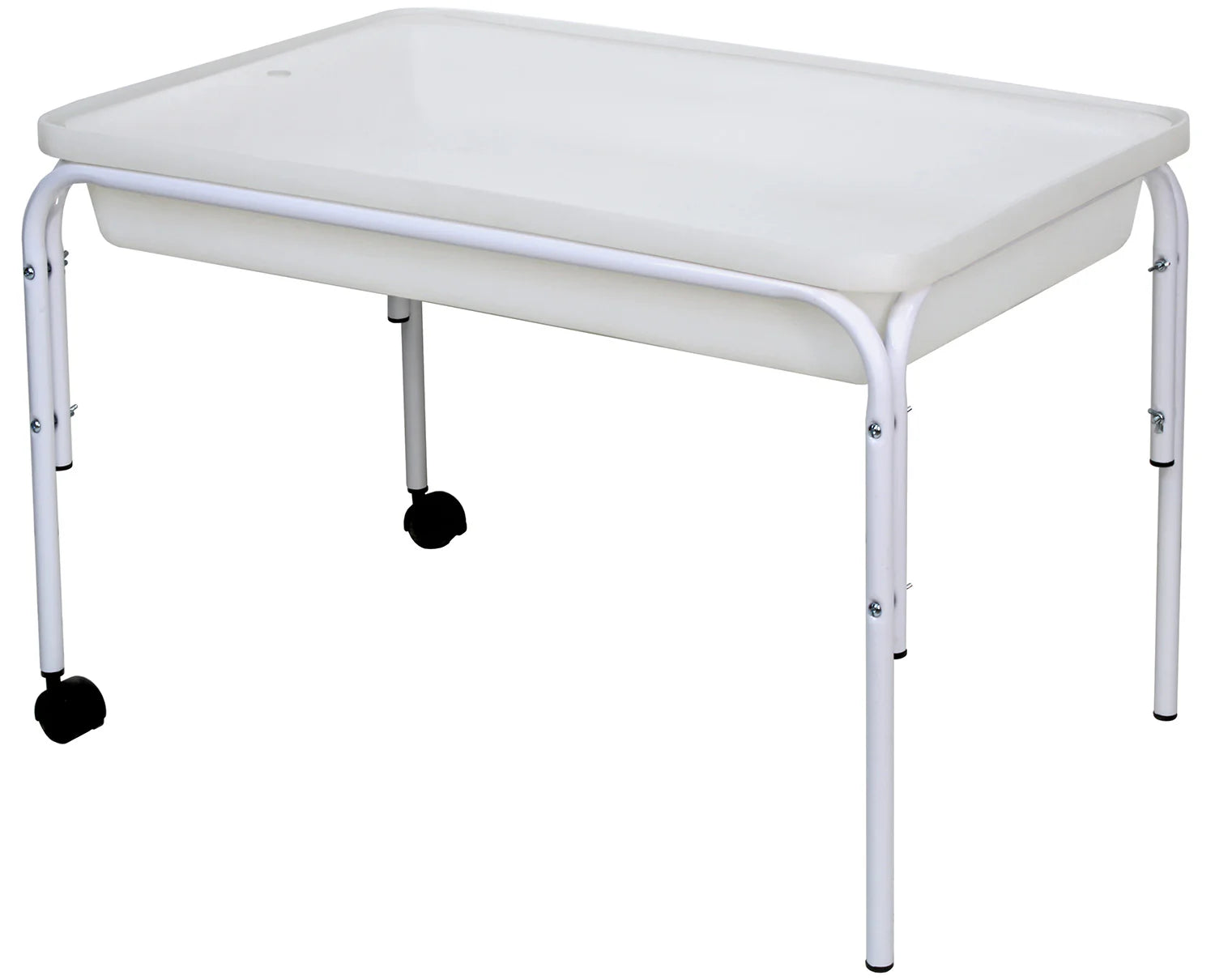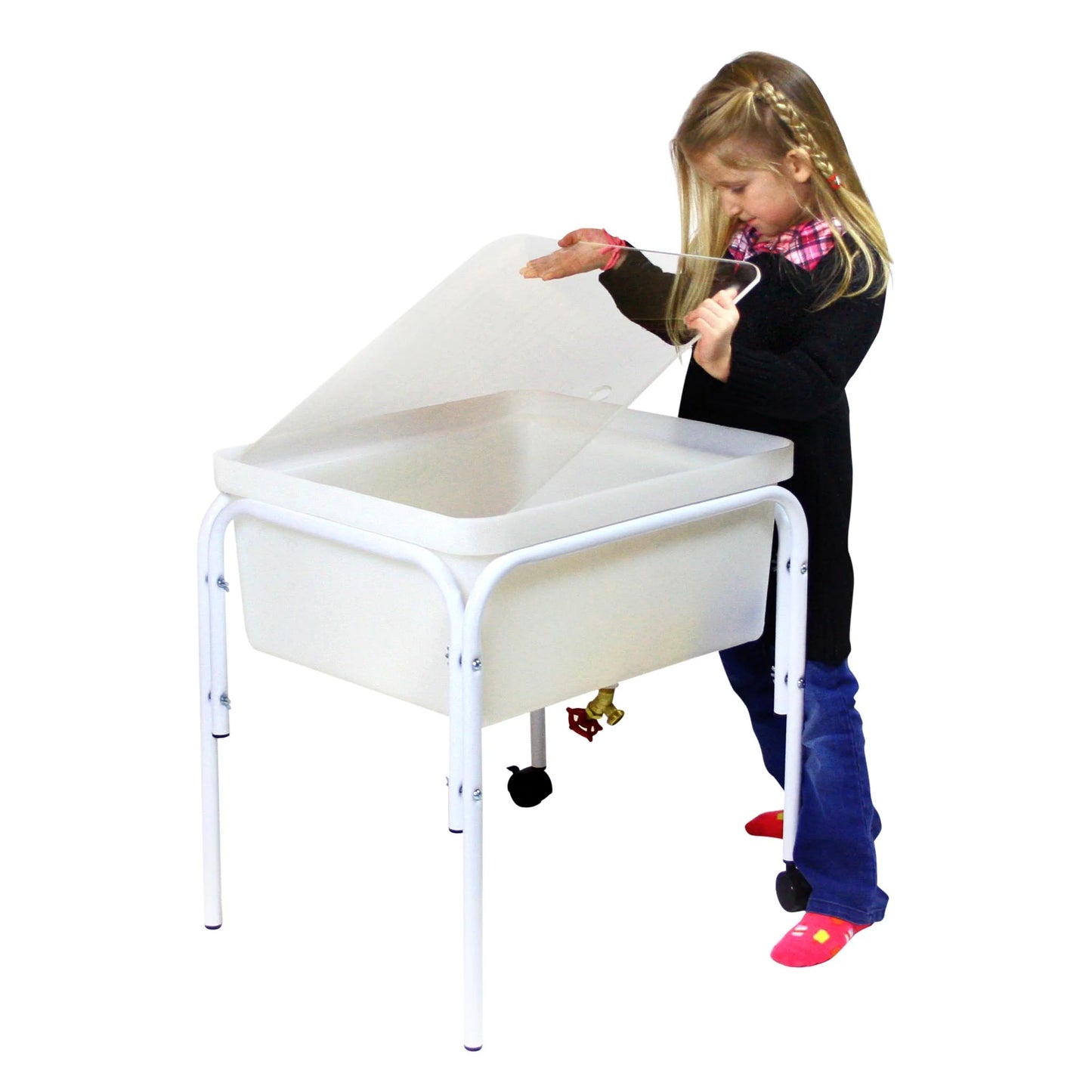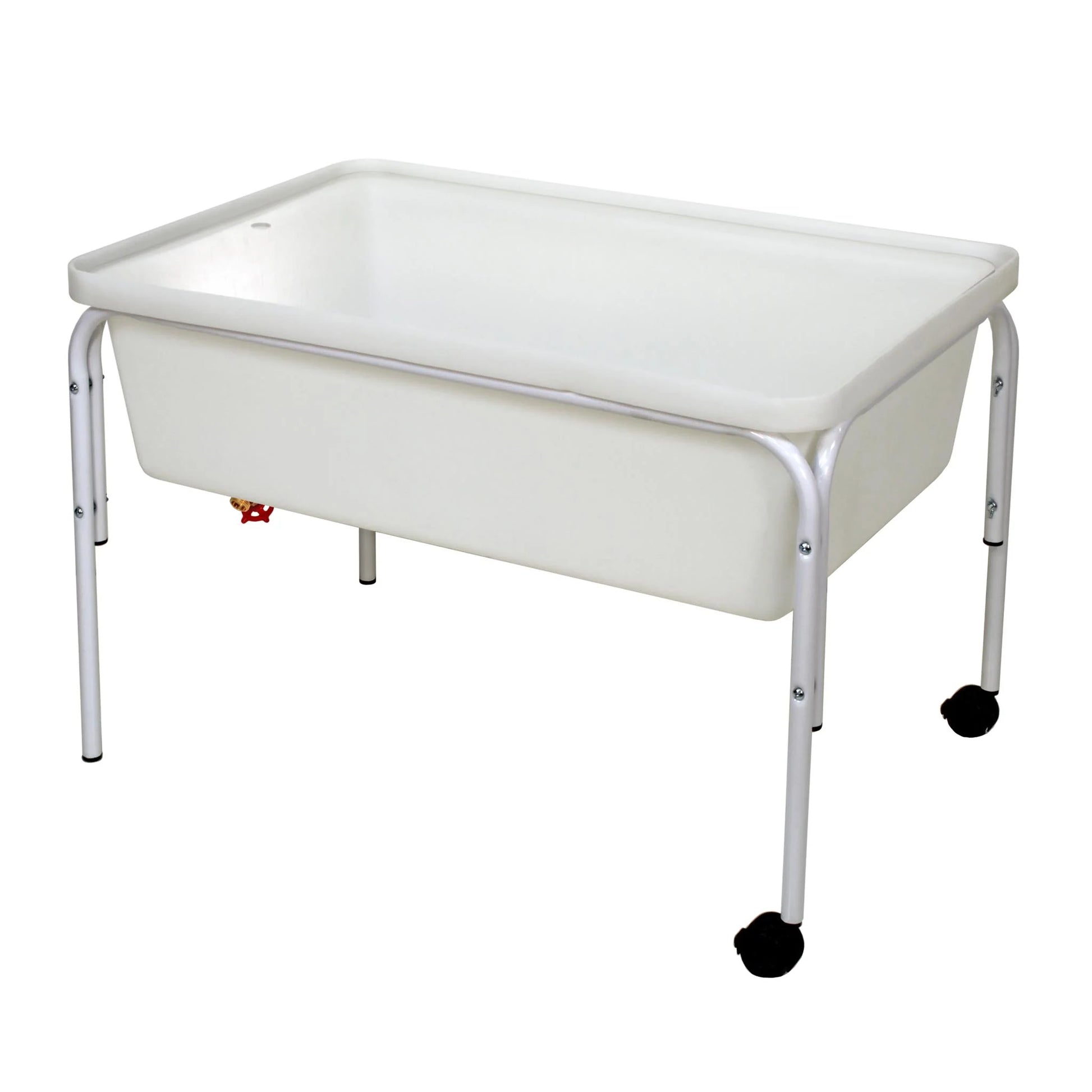 For sand enthusiasts, our Sand Tables with Metal Frame are designed with a 5-inch depth, providing a suitable environment for sensory sand play. While these tables do not feature a drainage tap, the outside lip of the tub securely rests on the metal frame, ensuring a secure and stable surface for sand exploration. Please note that Sand Tables are available in the large size only.
